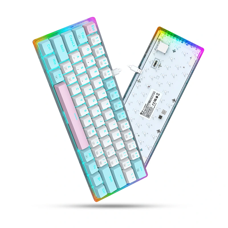 1. Nešiojama 60 % mechaninė klaviatūra: tai 61 klavišo kompaktiška mini mechaninė klaviatūra su metaline plokšte ir c tipo nuimama jungiamoji linija