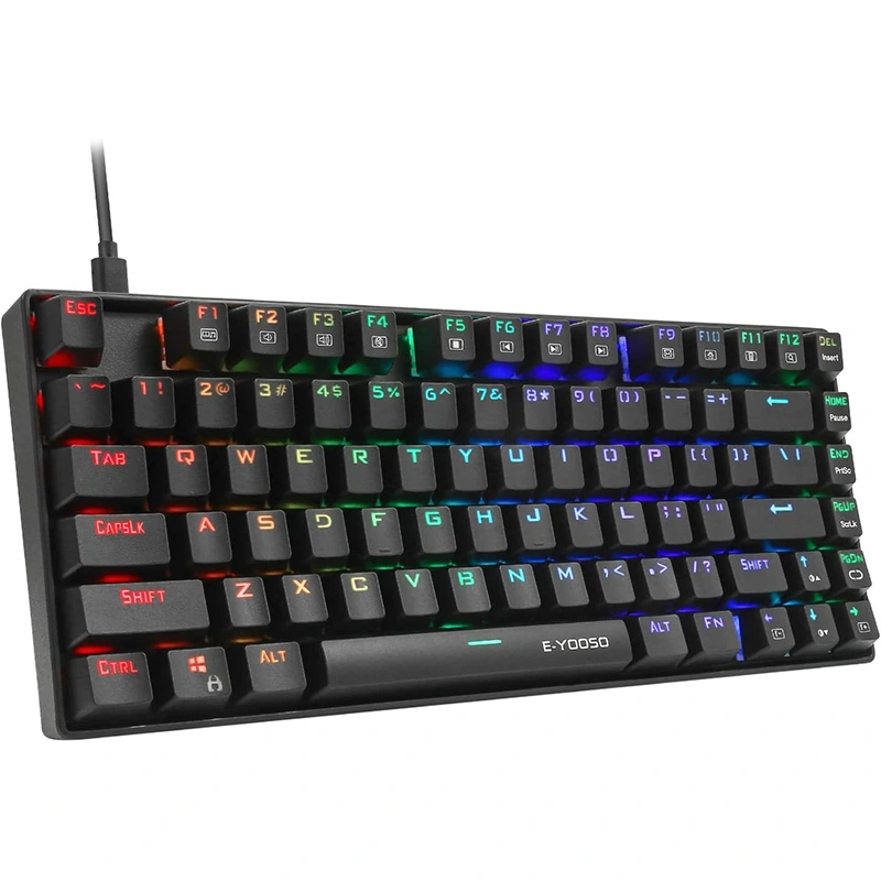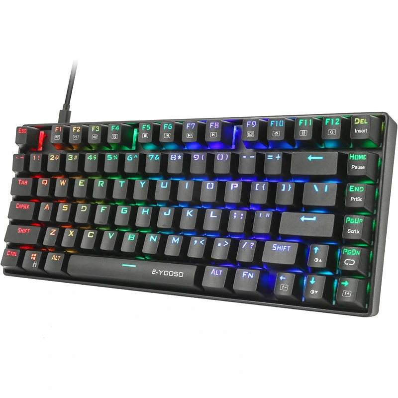 E-Yooso Z-88 PRO 60% kompaktiškas 81 klavišų RGB mechaninis mėlynas jungiklis LED apšviesta žaidimų klaviatūra, atspari vandeniui ir anti-vaiduokliai.