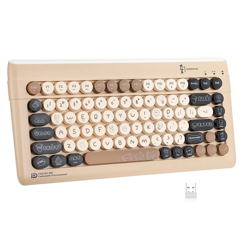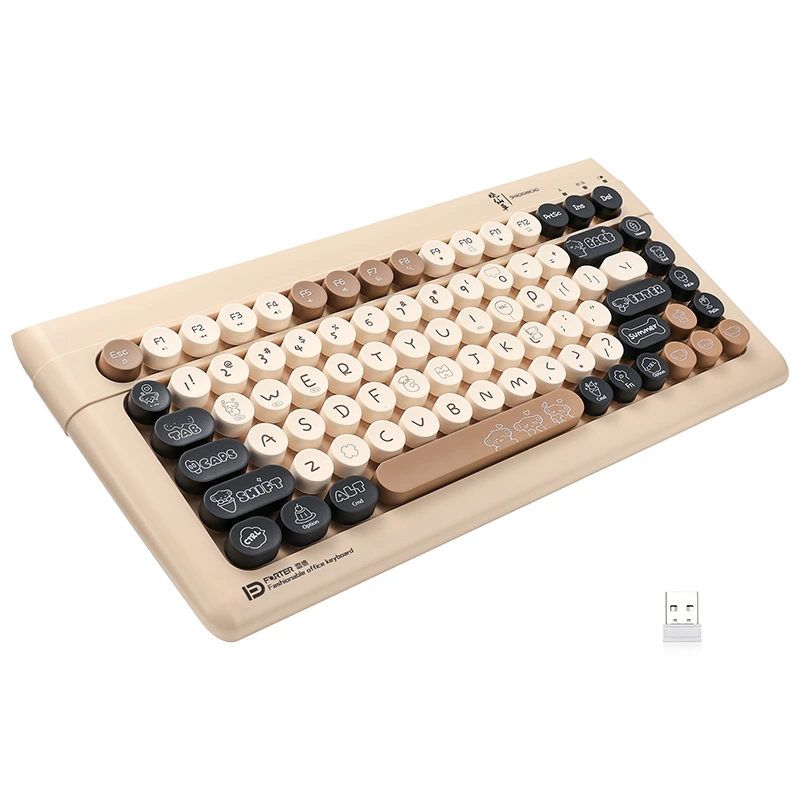 ❤ Kompaktiška ir madinga Bluetooth klaviatūra ▶ Ši Bluetooth klaviatūra turi 84 apvalius klavišus. Tai 60 % išdėstymo klaviatūra, kompaktiška ir lengvai nešiojama. Madinga forma įkvėpta retro elegantiškos rašomosios mašinėlės formos, unikalaus apvalaus klavišų dangtelio. Tiesiog paspauskite FN + W/E klavišus, kad įjungtumėte „Bluetooth“ režimą.