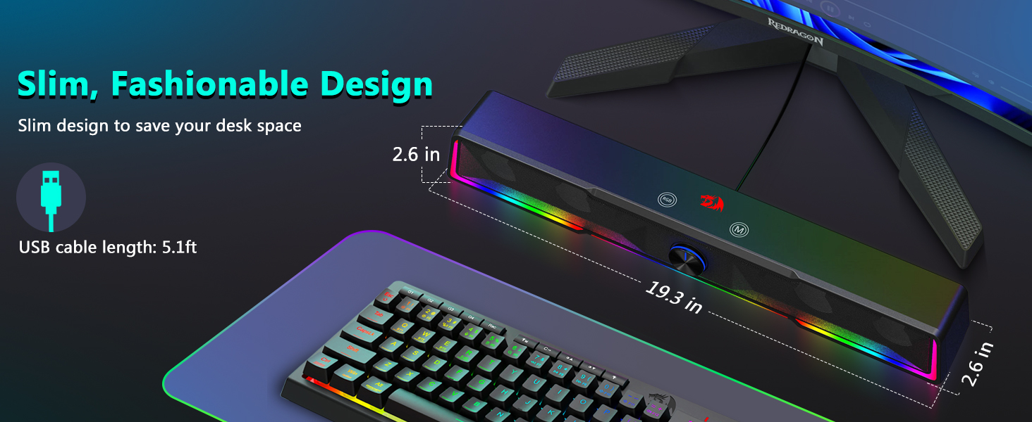 Vietą taupantis garso juostos dizainas Skirtingai nuo tradicinių garsiakalbių, kurie užima didelius plotus abiejose monitoriaus pusėse, Black GS516 Bluetooth/USB laidinio ryšio garso juostos garsumo rankenėlės kompiuterio garsiakalbis pasižymi plona garso juostos struktūra, kuri patogiai telpa po dauguma kompiuterių ekranų. Šis kompaktiškas dizainas padeda išlaikyti švarią ir tvarkingą darbo stalo aplinką, tuo pačiu skleidžiant sodrų ir įtraukiantį garsą.