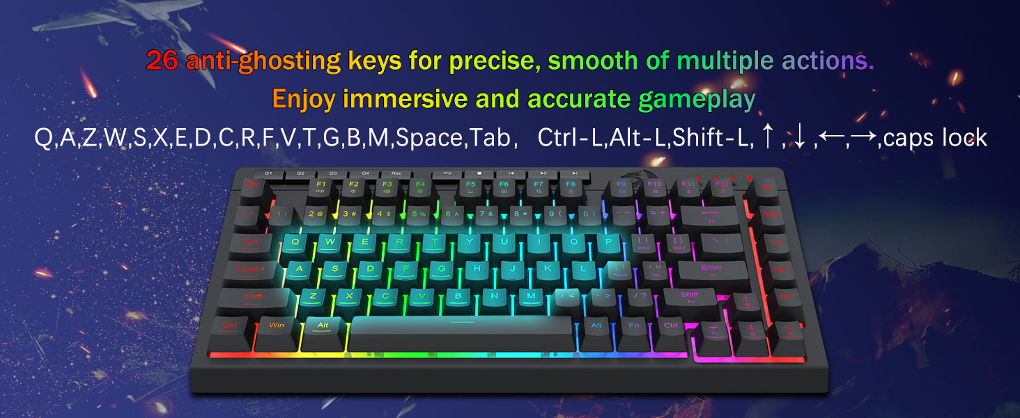 26 anti-ghost klavišai ir tam skirti medijos valdikliai –Su anti-ghosting klavišais (klavišais su apatiniu brūkšniu), kurie leidžia vienu metu veikti 26 klavišams, kad būtų galima greitai ir tiksliai reaguoti į žaidimą taip, kaip norėjote. Specialūs medijos valdikliai leidžia leisti, pristabdyti ir praleisti multimediją tiesiai iš klaviatūros, kad žaidimas būtų sklandus ir nepertraukiamas.