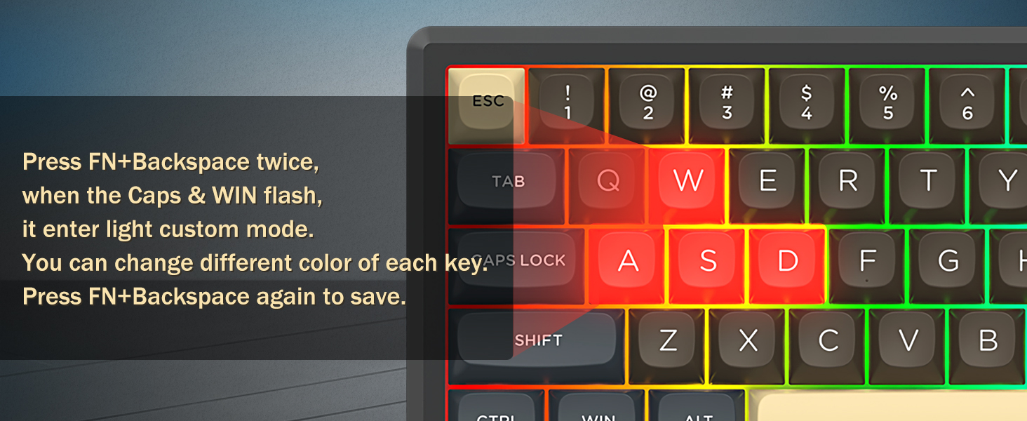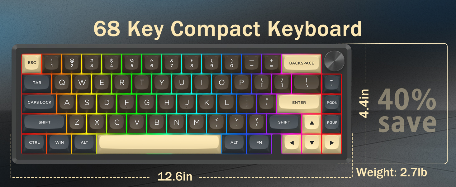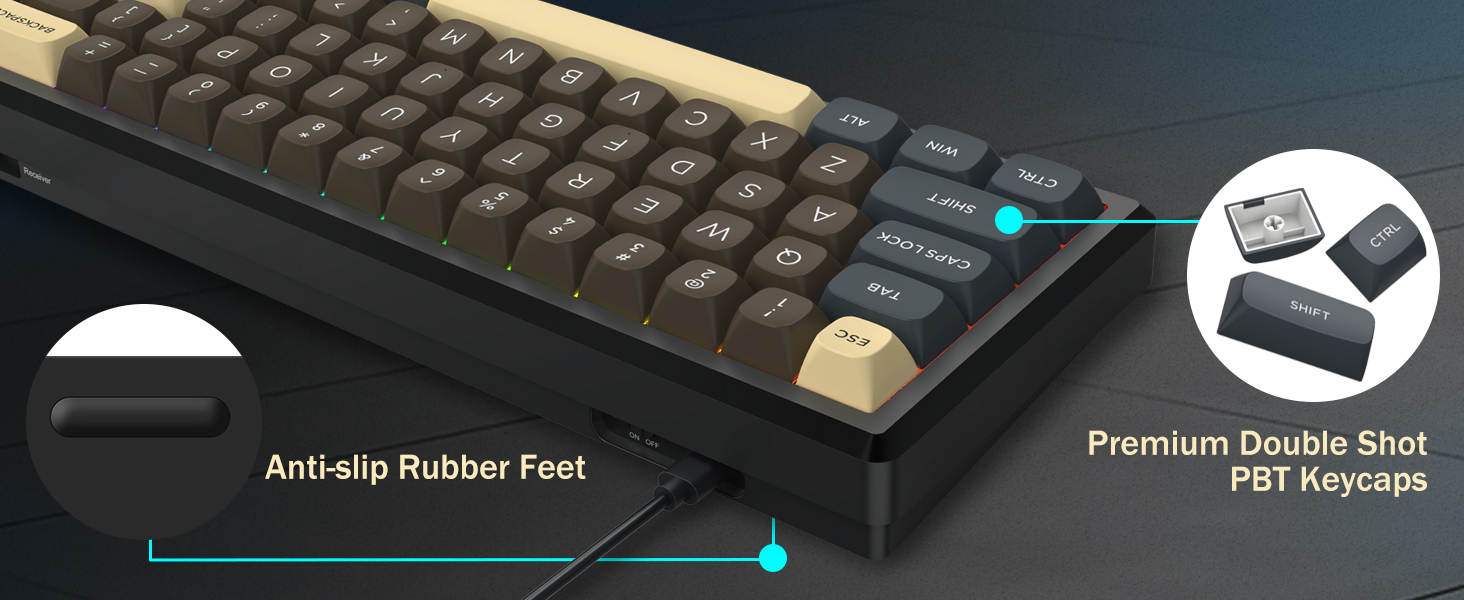 Dėl 60 % išdėstymo ši klaviatūra pašalina neesminius klavišus ir išlaiko pagrindines funkcijas naudojant klavišų derinius. Šis dizainas padeda sumažinti netvarką ant stalo ir suteikia daugiau vietos pelės judėjimui, todėl tinka tiek žaidimų, tiek produktyvumo aplinkai.