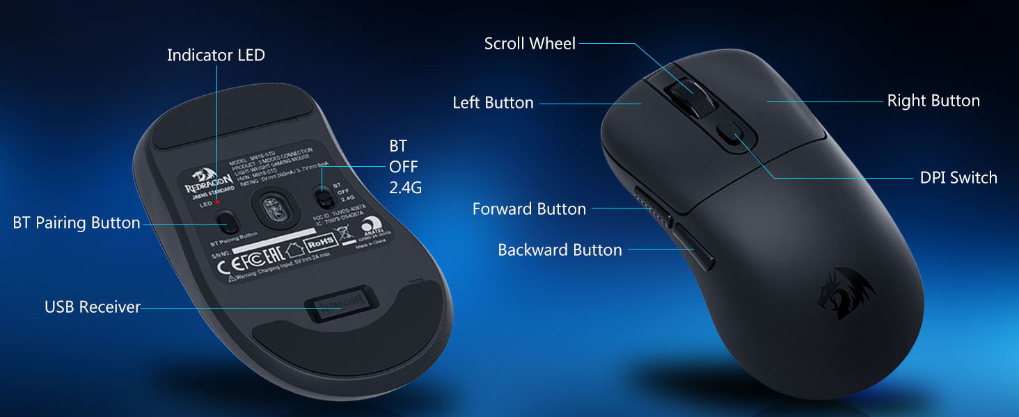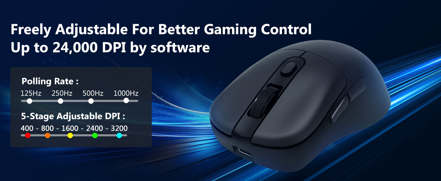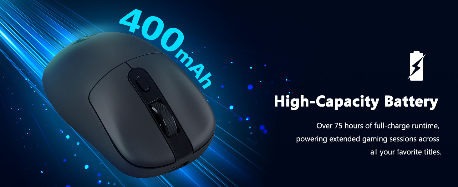 2,4 GHz belaidis režimas užtikrina stabilų ir reaguojantį įvestį, sumažindamas vėlavimą ir išlaikydamas nuoseklų valdymą greitos veiklos metu.