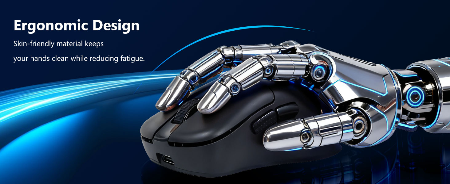 Pelė yra suformuota taip, kad palaikytų natūralią rankos padėtį. Jo paviršius užtikrina stabilų sukibimą, leidžiantį tiksliai valdyti greitus ir tikslius judesius.