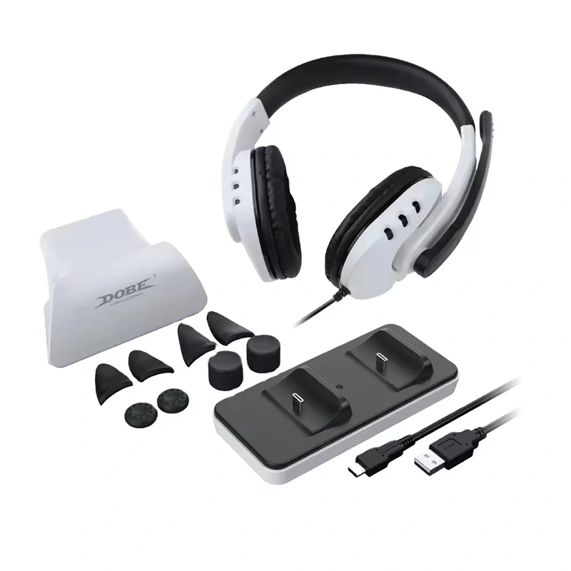 Individualus didmeninis DOBE PS5 žaidimų valdiklis 12 viename rinkinys, sėdynės įkroviklis + laidinės ausinės + stovas + paleidimo mygtukas + vairasvirtės dangtelio rinkinys