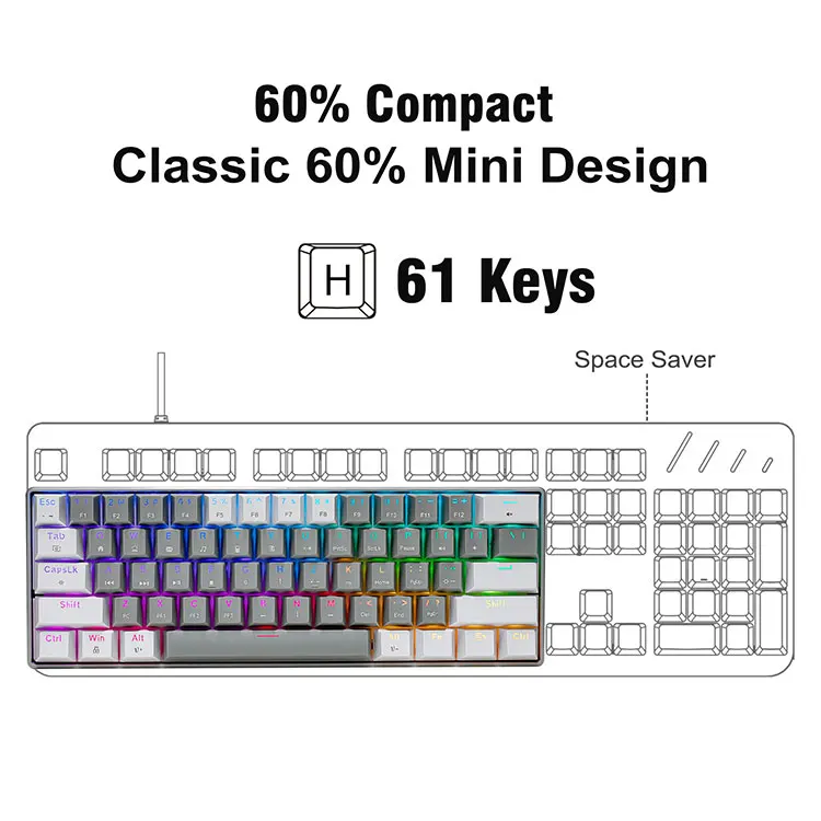 【Percent klaviatūros nešiojamas dizainas】 Šis nešiojamasis 60% mechaninis laidinis žaidimas turi puikų dydį ir