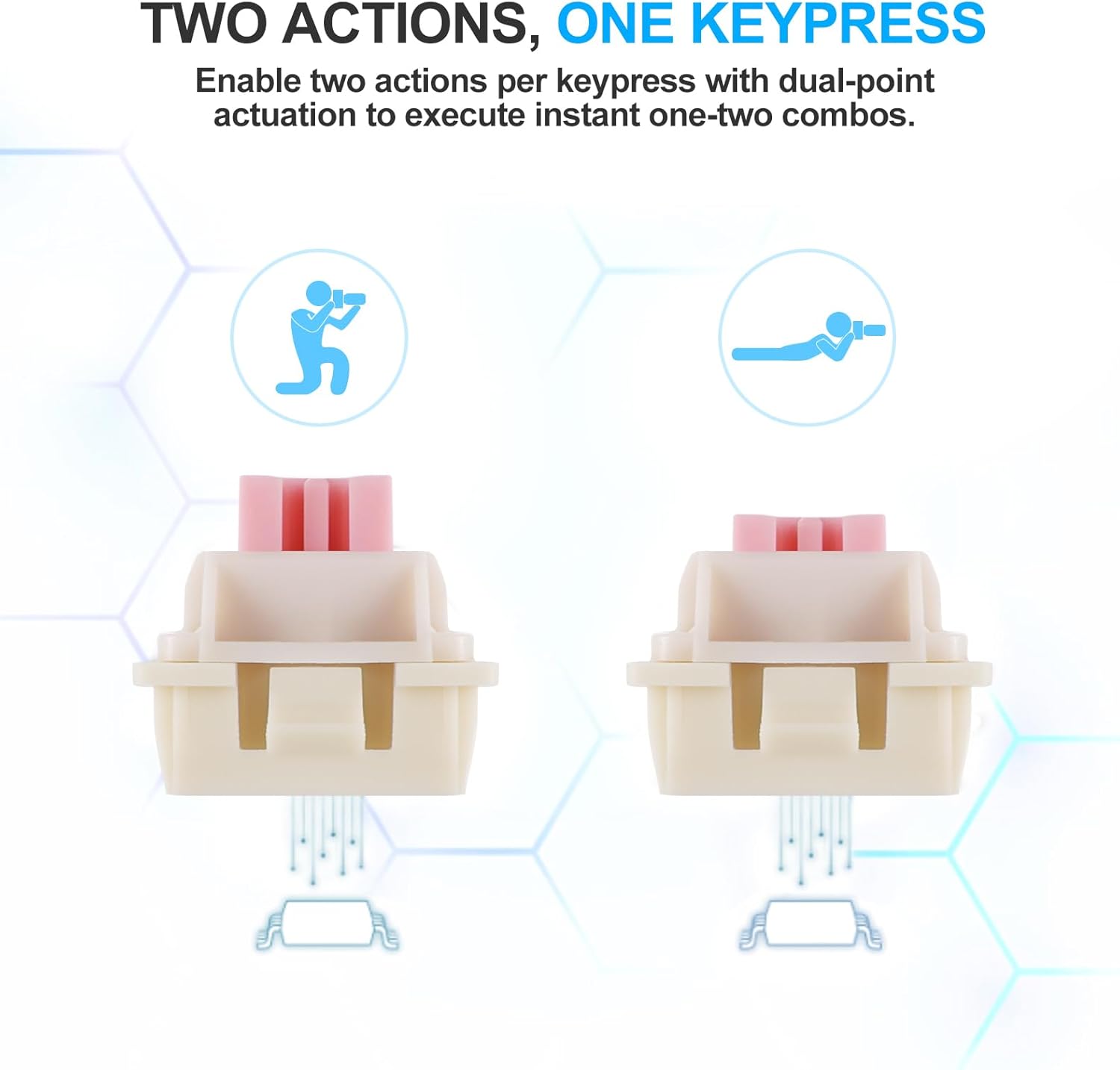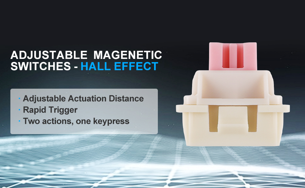 Magnetiniai jungikliai naudoja Hallo efekto jutiklius, kad aptiktų klavišų judėjimą, suteikdami reguliuojamus paleidimo taškus ir nuoseklų įvesties atpažinimą. Skirtingai nuo tradicinių mechaninių jungiklių, ši technologija sumažina fizinį nusidėvėjimą ir užtikrina ilgalaikį stabilumą.