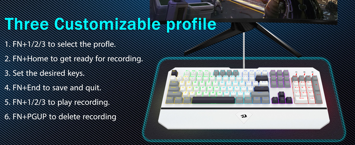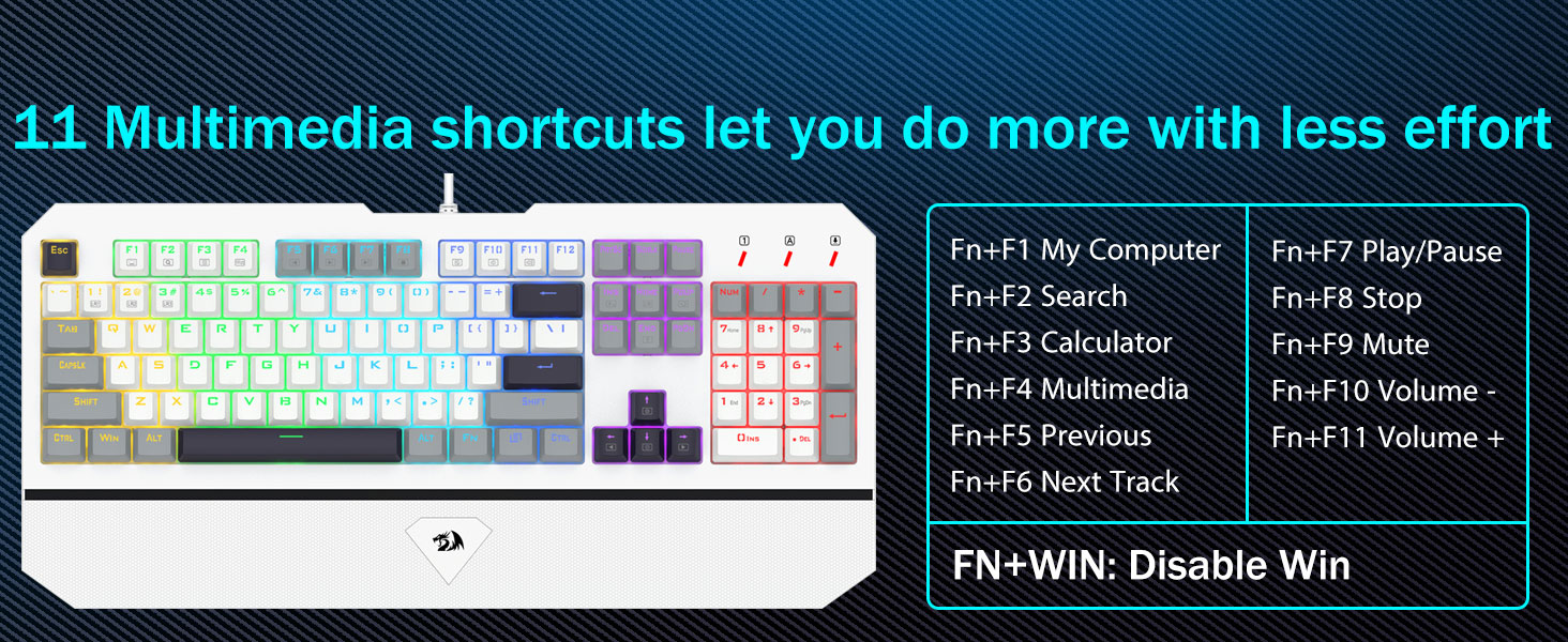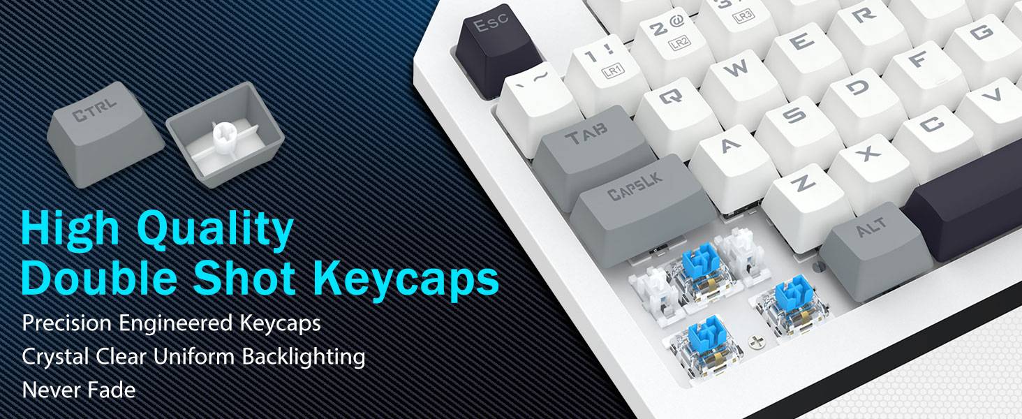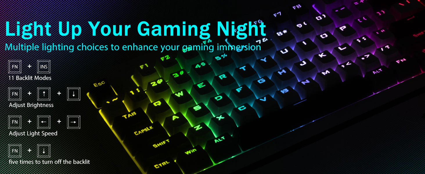 【Vaivorykštės klaviatūra su foniniu apšvietimu, kad patirtumėte įspūdingų įspūdžių】Apšvieskite savo darbalaukį naudodami 11 dinaminio foninio apšvietimo režimų, 5 reguliuojamus greičio ir ryškumo lygius. Ši klaviatūra pakeičia žaidimo sąranką, pagerina nuotaiką ir pasinerti, ypač esant prastam apšvietimui. Itin patvarūs dvigubo įpurškimo ABS klavišų dangteliai užtikrina krištolo skaidrumą, vienodą foninį apšvietimą, pagerinantį spausdinimo tikslumą net ir tamsoje.