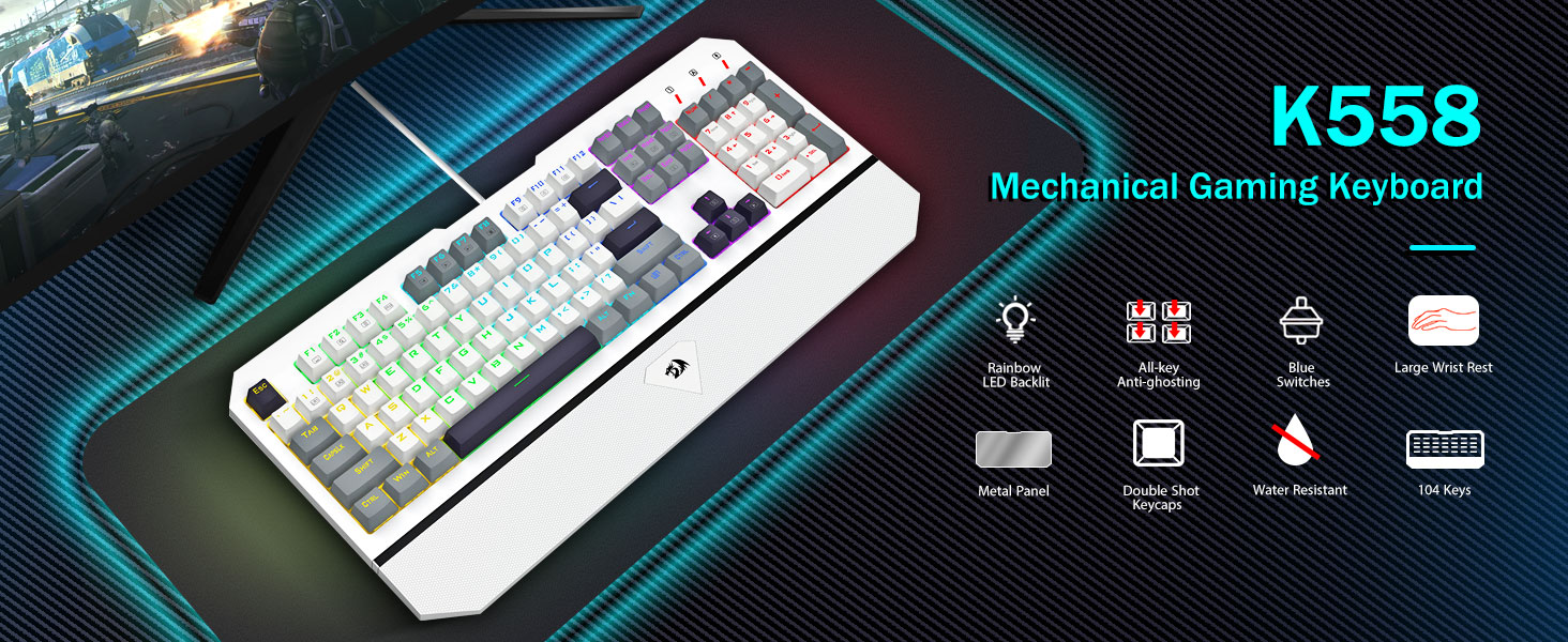 Balta K558 mechaninė žaidimų klaviatūra su laidine 104 klavišų klaviatūra