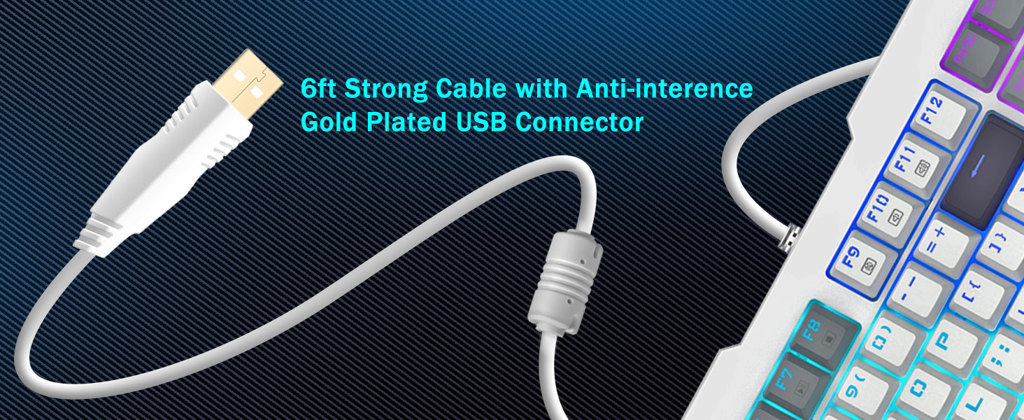 【Aukštos klasės 104 klavišų viso dydžio klaviatūra】Pagaminta iš aukščiausios klasės metalo lydinio ir ABS medžiagos, klaviatūros skydelis yra itin tvirtas ir atsparus įbrėžimams. Paauksuota USB jungtis užtikrina stabilų ir patikimą ryšį, kad būtų galima žaisti geriausius rezultatus. Ši 1,39 kg sverianti klaviatūra jūsų rankose jaučiasi kaip tvirtas bakas, užtikrinantis neprilygstamą stabilumą naudojimo metu.