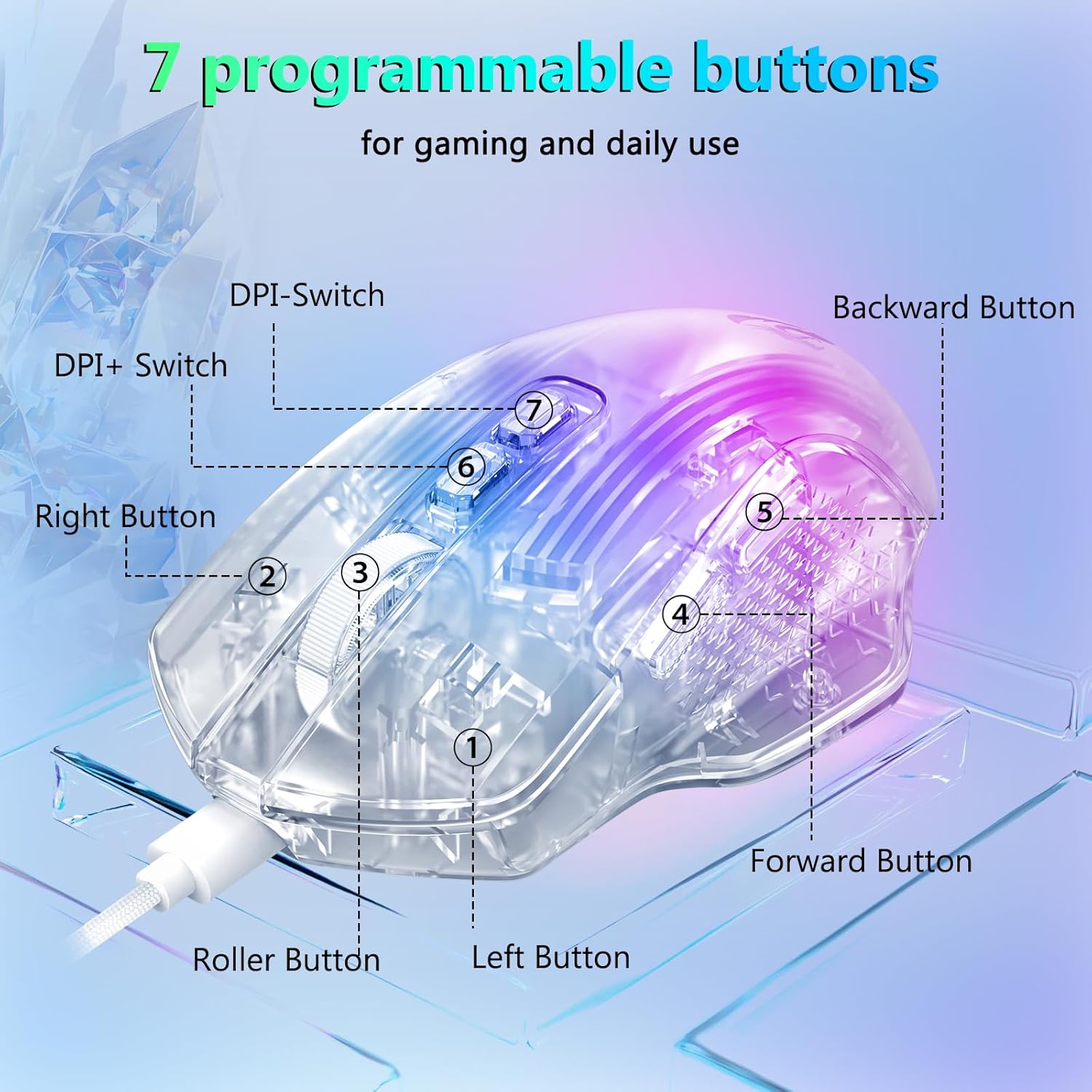 CHUANGQUAN White M695CT 24 000 DPI 8 RGB LED foninio apšvietimo režimo laidinė žaidimų pelė užtikrina itin tikslų sekimą, sklandų valdymą ir dinamišką apšvietimą, sukurta žaidėjams, kurie reikalauja greičio, tikslumo ir stiliaus.