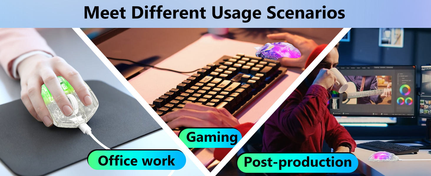 Pelė tinka įvairiems žaidimų žanrams, įskaitant pirmojo asmens šaudyklas, strateginius žaidimus ir vaidmenų žaidimus. Jo tikslumas ir reagavimas padeda pagerinti kontrolę ir reakcijos laiką.
